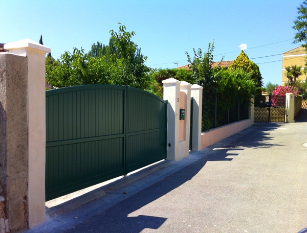 Entrée portail, maçonnerie de piliers, enduits extérieurs, création d'un portillon